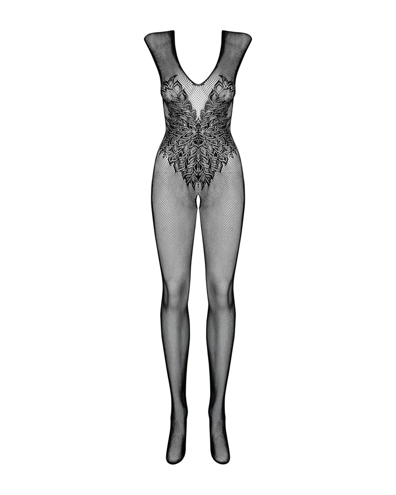 Für Engel mit erotischem Auftrag! Schwarzer Catsuit ouvert N112 von Obsessive aus Netz mit eingewebten Flügel-Motiven. Rundum weich und elastisch für hohen Tragekomfort. Vorne tief ausgeschnitten, im Schritt verführerisch offen. Mit Fuß. 90% Polyamid, 10% Elasthan. Achtung – Obsessive hat eine separate Größentabelle.